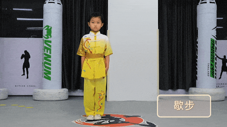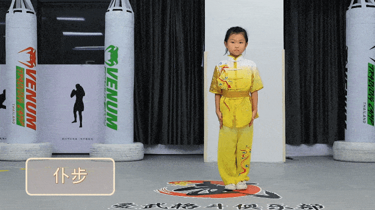 在这套拳法中,除弓、马、仆、虚、歇五种步型外,还有拳、掌、勾三种手型,配合穿掌、挑掌、冲拳、拧腰顺肩等动作,既可以舒展筋骨,还可以帮助习练者锻炼身体的柔韧性、灵活性与协调性。接下来,由四岁开始习武、目前已达到武术一段的李婉彤同学为大家演示五步拳的基础步型,一起来练习吧~