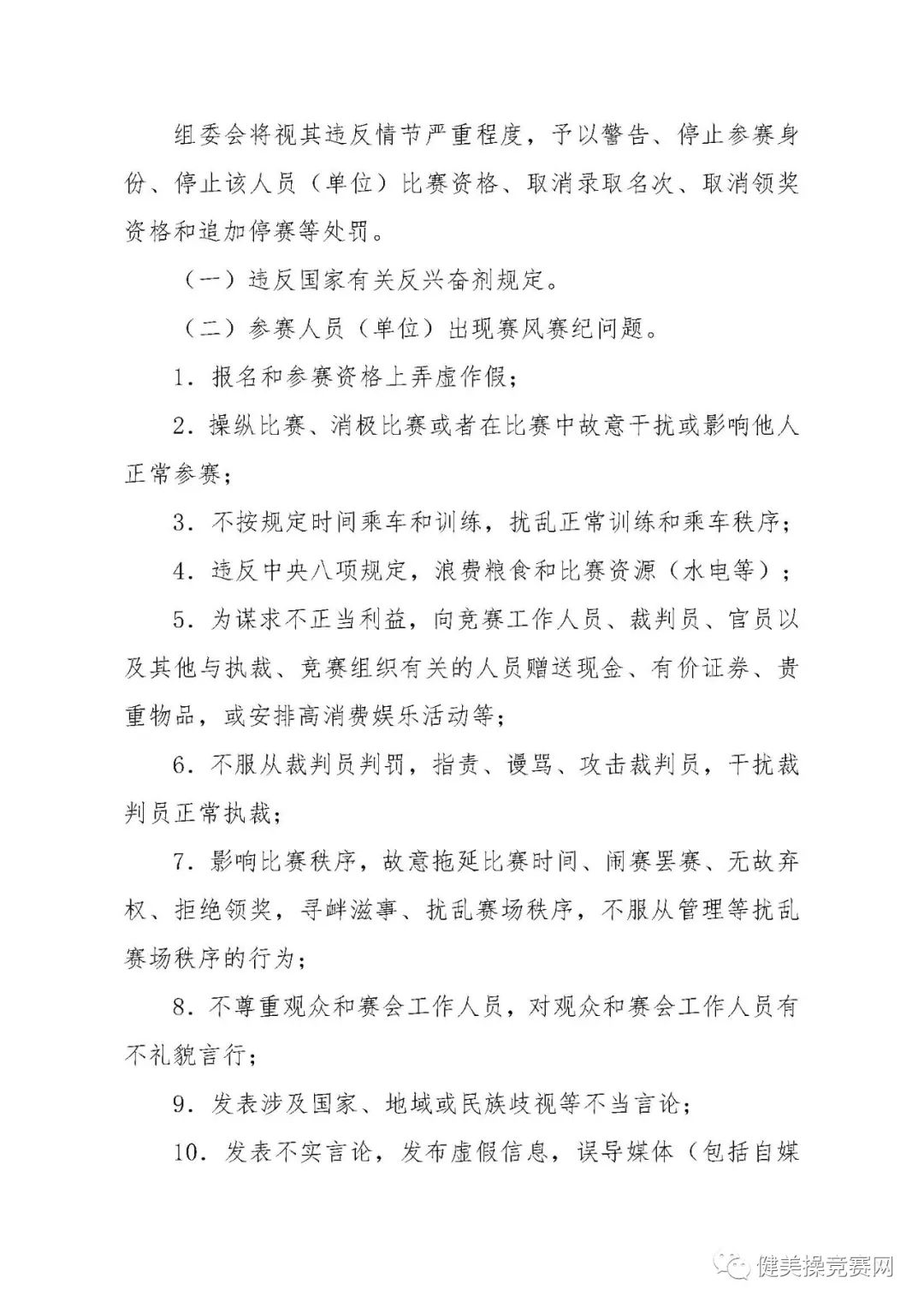 (四)参赛人员在赛事期间须严格遵守国家体育总局关于赛风赛纪、反兴奋剂等各项规定,服从赛会管理,文明参赛,公平竞赛。